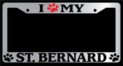 Chrome License Plate Frame I Heart My St. Bernard (Paw) Auto Accessory 587 Mod-GRAPH9856236-4725