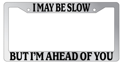 Chrome License Plate Frame I May Be Slow But I'm Ahead Of You Auto Accessory Mod-GRAPH9856236-5377