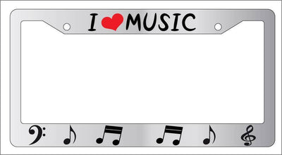 Chrome License Plate Frame I LOVE MUSIC (NOTES) Heart Auto Accessory Mod-GRAPH9856236-6714