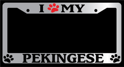Chrome License Plate Frame I Heart My Pekingese (Paw) Auto Accessory 494 Mod-GRAPH9856236-4716