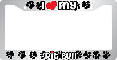 Chrome License Plate Frame I Heart My Pit Bull (Paw) Auto Accessory 504 Mod-GRAPH9856236-4717