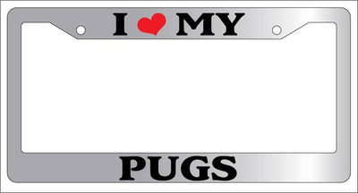 Chrome License Plate Frame I Heart My Pugs Auto Accessory Peticular Mod-GRAPH9856236-6855
