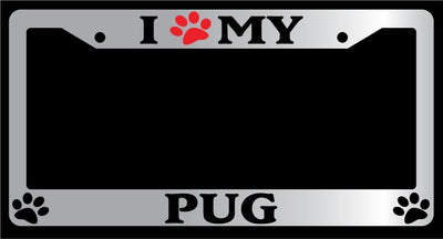 Chrome License Plate Frame I Heart My Pug (Paw) Auto Accessory 528 Mod-GRAPH9856236-4720