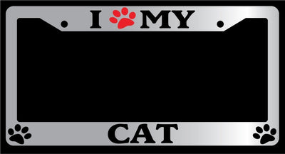 Chrome License Plate Frame I Heart My Cat (Paw) Auto Accessory Novelty -325 Mod-GRAPH9856236-4695