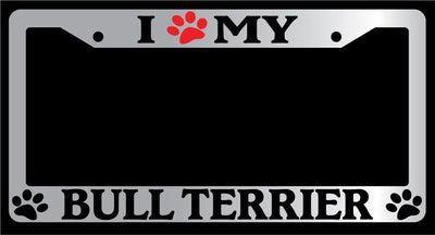 Chrome License Plate Frame I Heart My Bull Terrier (Paw) Auto Accessory -320 Mod-GRAPH9856236-4698