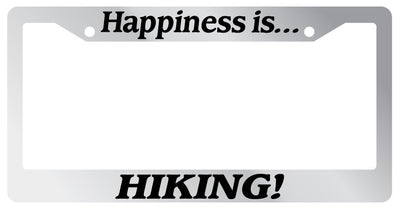 Chrome License plate frame Happiness is Hiking! 853 Mod-GRAPH9856236-1239