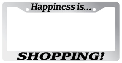 Chrome License plate frame Happiness is Shopping! 858 Mod-GRAPH9856236-1249
