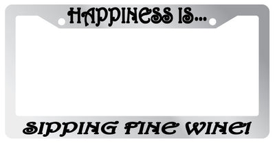 Chrome License plate frame Happiness Sipping fine Wine 859 Mod-GRAPH9856236-1241
