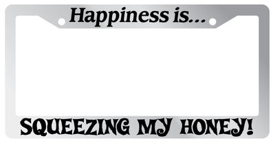Chrome License plate frame Happiness is Squeezing my Honey 861 Mod-GRAPH9856236-1271