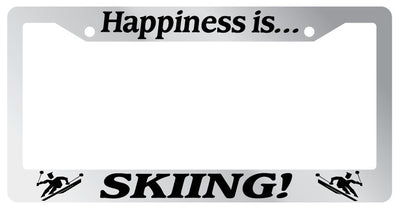 Chrome License plate frame Happiness is Skiing 860 Mod-GRAPH9856236-1237