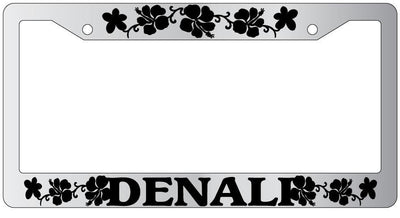 Chrome License Plate Frame DENALI HIBISCUS Auto Accessory 1984 Mod-GRAPH9856236-4199