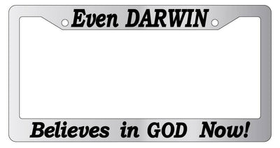 Chrome License Plate Frame Even Darwin Believes In God Now (#2) Accessory 2085 Mod-GRAPH9856236-5713