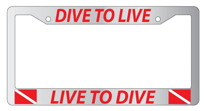 Chrome License Plate Frame DIVE TO LIVE LIVE TO DIVE (RED)w/FLAGS Auto Accessory Mod-GRAPH9856236-4360