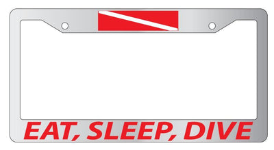 Chrome License Plate Frame EAT, SLEEP, DIVE (RED) w/FLAG Auto Accessory Mod-GRAPH9856236-4362