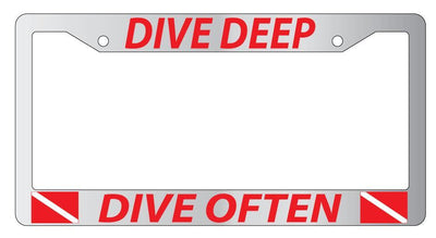 Chrome License Plate Frame DIVE DEEP DIVE OFTEN (RED) w/FLAGS Auto Accessory Mod-GRAPH9856236-4359