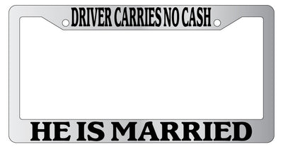 Chrome License Plate Frame Driver Carries No Cash He Is Married Auto Accessory Mod-GRAPH9856236-6315
