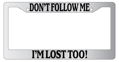 Chrome License Plate Frame Don't Follow Me I'm Lost Too! Auto Accessory Novelty Mod-GRAPH9856236-5359