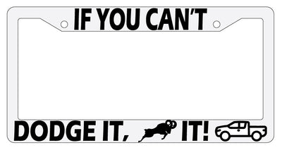 If You Can't Dodge It, Ram It! (Design 2A) White Plastic License Plate Frame Mod-GRAPH9856236-2215