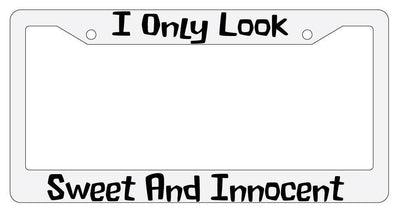 I Only Look Sweet And Innocent White Plastic License Plate Frame Auto Mod-GRAPH9856236-1576
