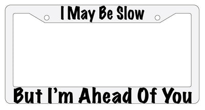 I May Be Slow But I'm Ahead Of You (DESIGN 2) Black Plastic License Plate Frame Mod-GRAPH9856236-953