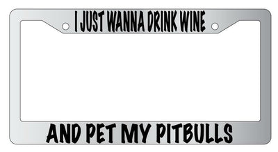 I Just Wanna Drink Wine And Pet My Pitbulls Chrome License Plate Frame Mod-GRAPH9856236-4743