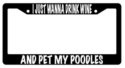 I Just Wanna Drink Wine And Pet My Poodles Black Plastic License Plate Frame Mod-GRAPH9856236-602