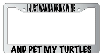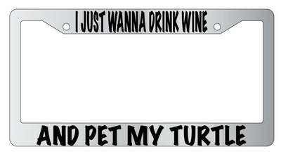 I Just Wanna Drink Wine And Pet My Turtles Chrome License Plate Frame Mod-GRAPH9856236-4731