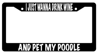 I Just Wanna Drink Wine And Pet My Poodle Black Plastic License Plate Frame Mod-GRAPH9856236-600