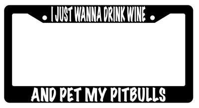 I Just Wanna Drink Wine And Pet My Pitbulls Black Plastic License Plate Frame Mod-GRAPH9856236-599