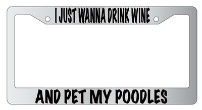I Just Wanna Drink Wine And Pet My Poodles Chrome License Plate Frame Mod-GRAPH9856236-4751