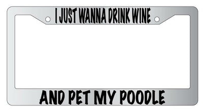 I Just Wanna Drink Wine And Pet My Poodle Chrome License Plate Frame Mod-GRAPH9856236-4742
