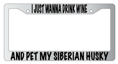 I Just Wanna Drink Wine And Pet My Siberian Husky Chrome License Frame Mod-GRAPH9856236-4737