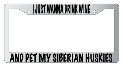 I Just Wanna Drink Wine And Pet My Siberian Huskies Chrome License Frame Mod-GRAPH9856236-4738