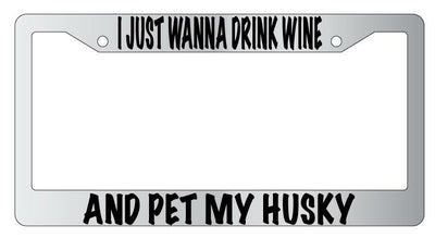 I Just Wanna Drink Wine And Pet My Husky Chrome License Plate Frame Mod-GRAPH9856236-4747