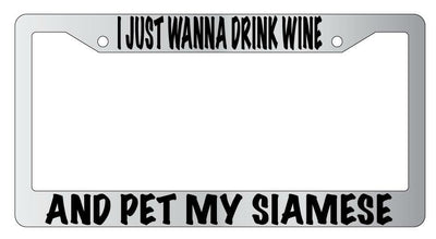 I Just Wanna Drink Wine And Pet My Siamese Chrome License Frame Mod-GRAPH9856236-4739
