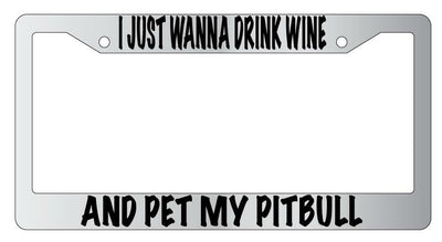 I Just Wanna Drink Wine And Pet My Pitbull Chrome License Plate Frame Mod-GRAPH9856236-4744