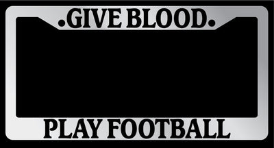 Chrome License Plate Frame "Give Blood, Play Football" Auto Accessory 781 Mod-GRAPH9856236-6077