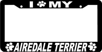 AIREDALE TERRIER DOG paw print License Plate Frame Plastic License Plate Frame Polystyrene plastic with vinyl graphics. Strong with tabs on the back to secure your plate to the frame. This is a buy it now for the frame pictured It is designed to fit a US/CANADA license plate.