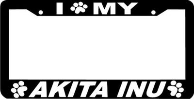 AKITA INU DOG paw print License Plate Frame Plastic License Plate Frame Polystyrene plastic with vinyl graphics. Strong with tabs on the back to secure your plate to the frame. This is a buy it now for the frame pictured It is designed to fit a US/CANADA license plate.