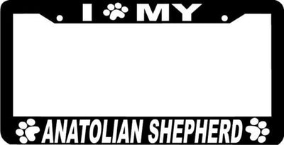 ANATOLIAN SHEPHERD DOG paw print License Plate Frame Plastic License Plate Frame Polystyrene plastic with vinyl graphics. Strong with tabs on the back to secure your plate to the frame. This is a buy it now for the frame pictured It is designed to fit a US/CANADA license plate.