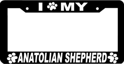 Anatolian Shepherd Dog paw print Plate Frame Plastic License Plate Frame Polystyrene plastic with vinyl graphics. Strong with tabs on the back to secure your plate to the frame. This is a buy it now for the frame pictured It is designed to fit a US/CANADA license plate.