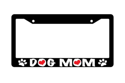 Black License Plate Frame DOG MOM w/PAWS Auto Accessory Black license plate frame DOG MOM w/PAWS made from high impact ABS plastic, covered with color vinyl printing. This frame is designed to last. These frames will last longer than your car.