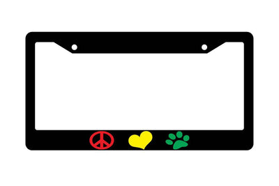 Black License Plate Frame PEACE LOVE PAW LOGOS Auto Reggae 231 Mod-GRAPH9856236-2439