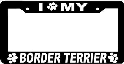 BORDER TERRIER paw print License Plate Frame Plastic License Plate Frame Polystyrene plastic with vinyl graphics. Strong with tabs on the back to secure your plate to the frame. This is a buy it now for the frame pictured It is designed to fit a US/CANADA license plate.