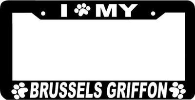 BRUSSELS GRIFFON DOG paw print License Plate Frame Plastic License Plate Frame Polystyrene plastic with vinyl graphics. Strong with tabs on the back to secure your plate to the frame. This is a buy it now for the frame pictured It is designed to fit a US/CANADA license plate.