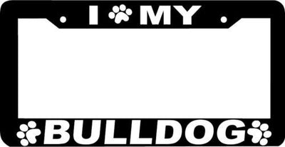 DOG paw print License Plate Frame Plastic License Plate Frame Polystyrene plastic with vinyl graphics. Strong with tabs on the back to secure your plate to the frame. This is a buy it now for the frame pictured It is designed to fit a US/CANADA license plate.