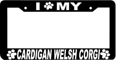 CARDIGAN WELSH CORGI DOG paw print License Plate Frame Plastic License Plate Frame Polystyrene plastic with vinyl graphics. Strong with tabs on the back to secure your plate to the frame. This is a buy it now for the frame pictured It is designed to fit a US/CANADA license plate.