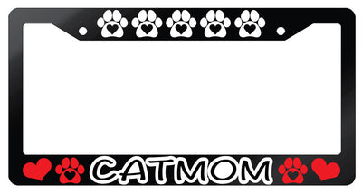 Cat Mom Heart Paws Design 2A Glossy Black Plastic License Plate Frame Mod-GRAPH9856236-7359