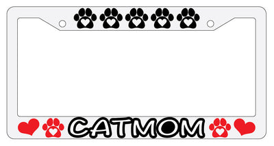 Cat Mom Heart Paws Design 2A White Plastic License Plate Frame Mod-GRAPH9856236-4026