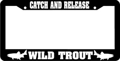 CATCH AND RELEASE WILD TROUT License Plate Frame Plastic License Plate Frame Polystyrene plastic with vinyl graphics. Strong with tabs on the back to secure your plate to the frame. This is a buy it now for the frame pictured It is designed to fit a US/CANADA license plate.